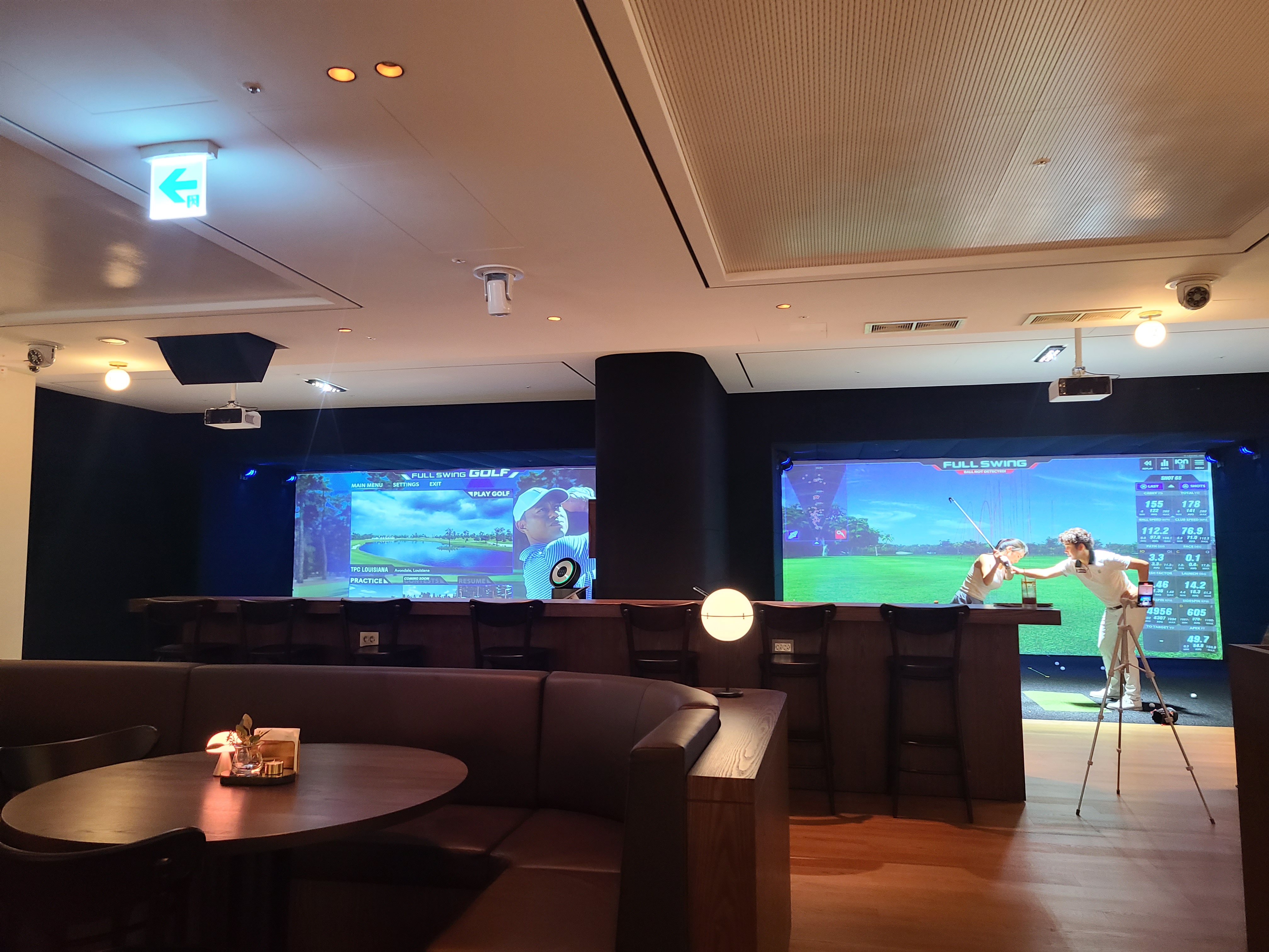 다른 것보다 전면 스크린 전체가 하나의 골프 이미지를 주니까 완전히 달라 보여요. 실내지만 개방감이 좋은 느낌?