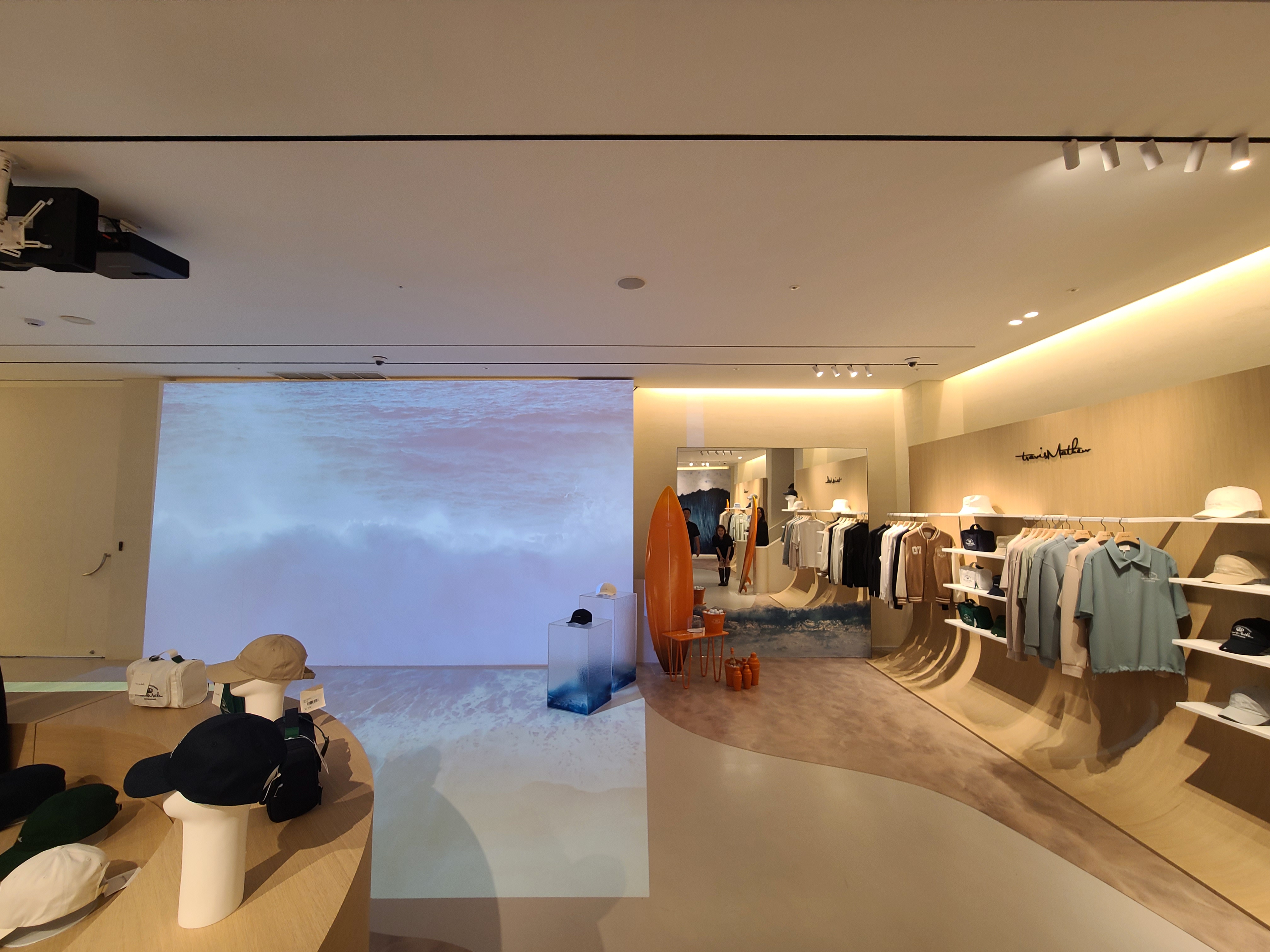 가로로 길게 들어간 LED 전광판에는 1층 매장에서 팝업 중인 Travismathew의 영상이 나오고 있었어요.